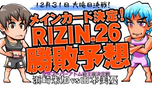 12月2日、RIZINの記者会見が行われ、大晦日に行われるRIZIN.26のカード発表が行われました。この日発表されたのは、既に決定してるこれ やったりますか!!#RIZIN26 pic.twitter.com/9iuluZiGQR — Kyoji Horiguchi (@kyoji1012) 2020年11月28日 バンタム…
